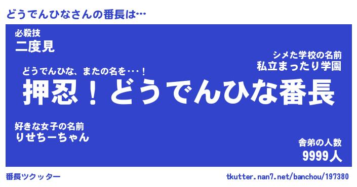 | 伝説のあだ名 | 『封印されしスナイパーどうでんひな』 |