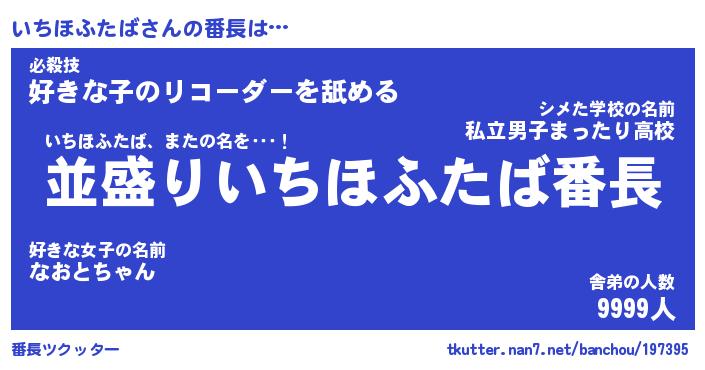 | 肩書あだ名 | 『いちほふたば社長』『いちほふたば教授』 |