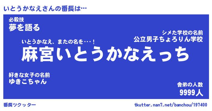 | ヘコむあだ名 | 『いとにー』『豆乳』『いとっ子』 |