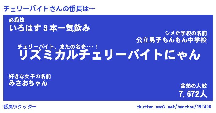 | 意味不明あだ名 | 『ペロリンチェリーバイト』 |