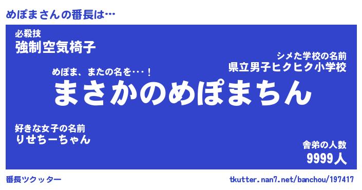 | 意味不明あだ名 | 『ペロリンめぽま』『めぽまフォーエバー』 |