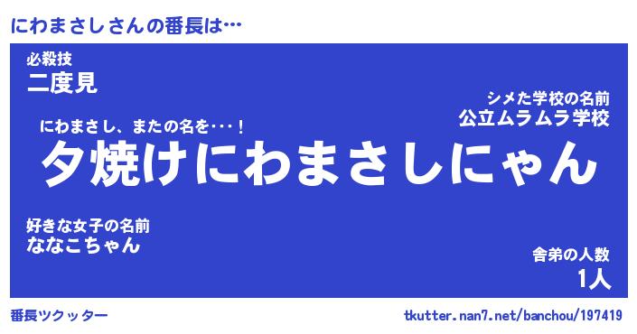 | ヒーロー風カッコイイあだ名 | 『スーパーニワマサシ』『黄金騎士ニワ』 |