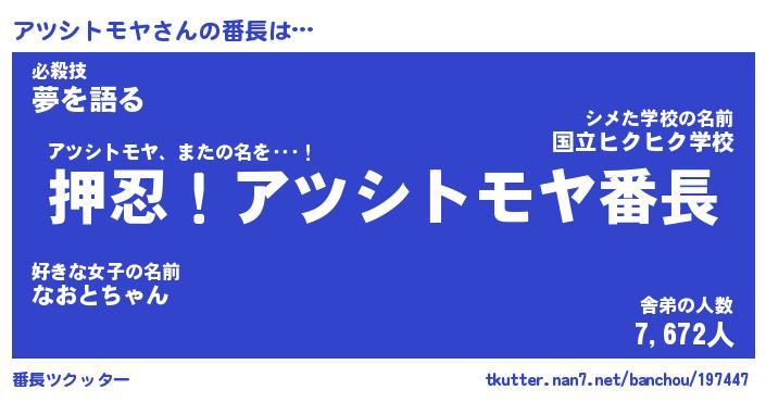 | ヘコむあだ名 | 『アツにゅー』『豆乳』『アツっ子』 |
