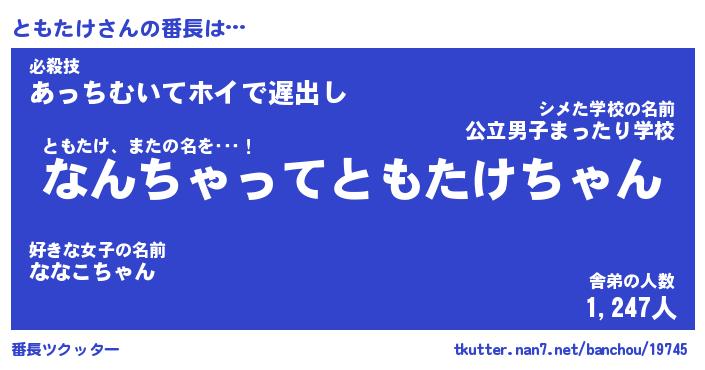 | 意味不明あだ名 | 『ペロリンともたけ』『永久保存ともたけ』 |