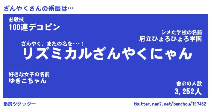 | ヘコむあだ名 | 『ざんもー』『牛乳』『ざんっぺ』 |