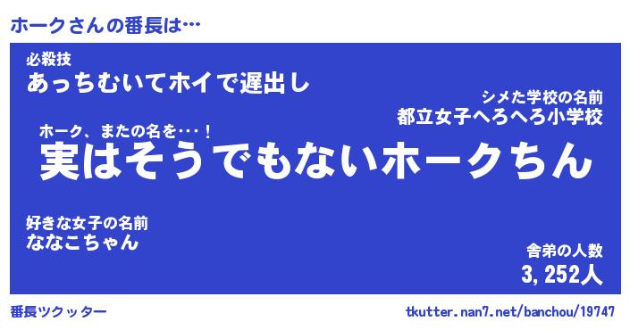 | ポケモン風あだ名 | 『ホーチュウ』『ホークダネ』 |