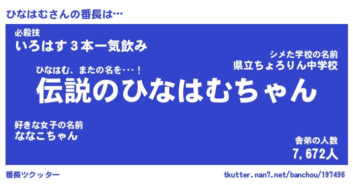 | 伝説のあだ名 | 『伝説のスナイパーひなはむ』 |