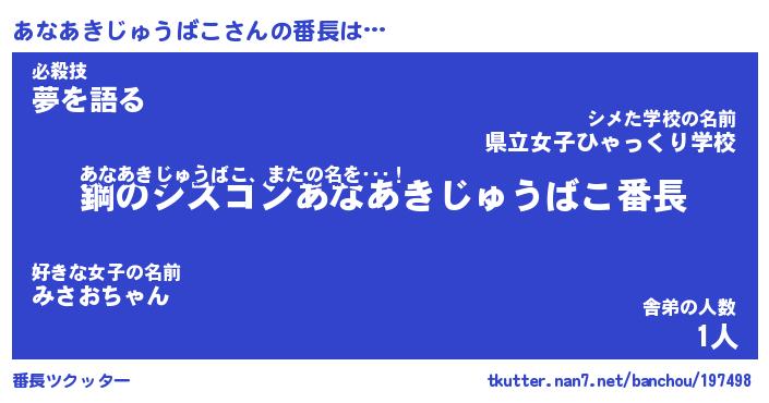 | ヘコむあだ名 | 『あなにー』『豆乳』『あなっぺ』 |