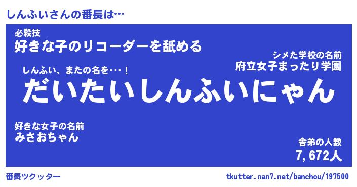| 意味不明あだ名 | 『ペロリンしんふい』『永久保存しんふい』 |