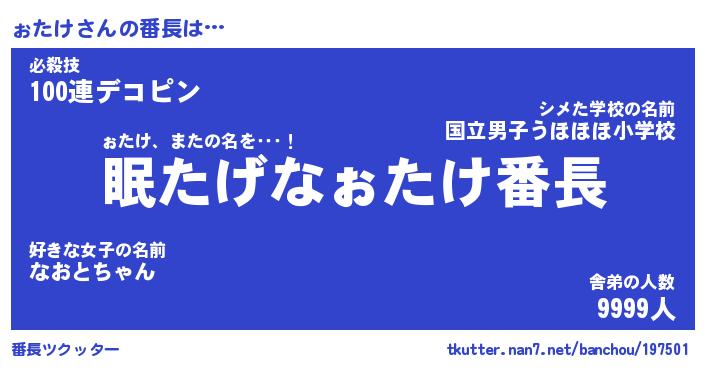 | 伝説のあだ名 | 『封印されしスナイパーぉたけ』 |