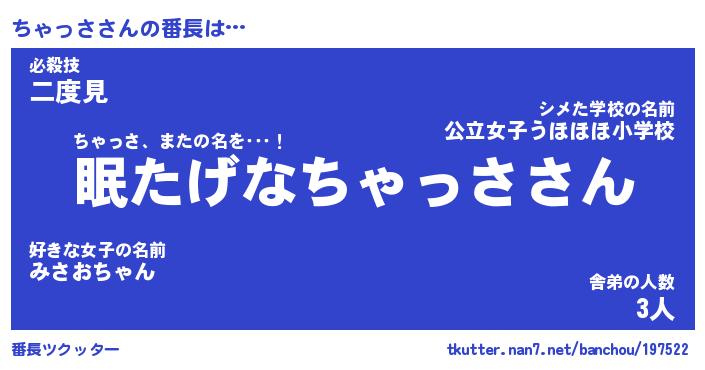 | 意味不明あだ名 | 『ペロリンちゃっさ』『永久保存ちゃっさ』 |
