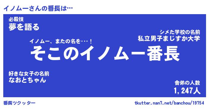 | 意味不明あだ名 | 『ペロリンイノムー』『永久保存イノムー』 |