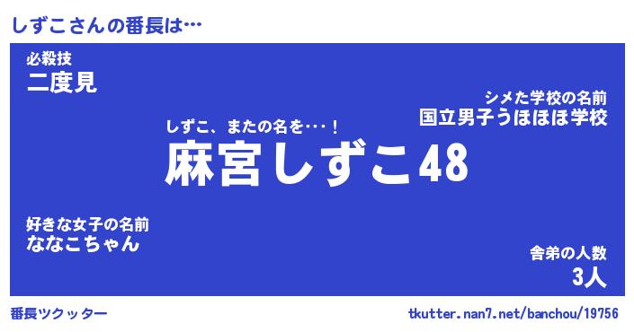 | ヒーロー風カッコイイあだ名 | 『スーパーシズコ』『ウルトラしずこマン』 |