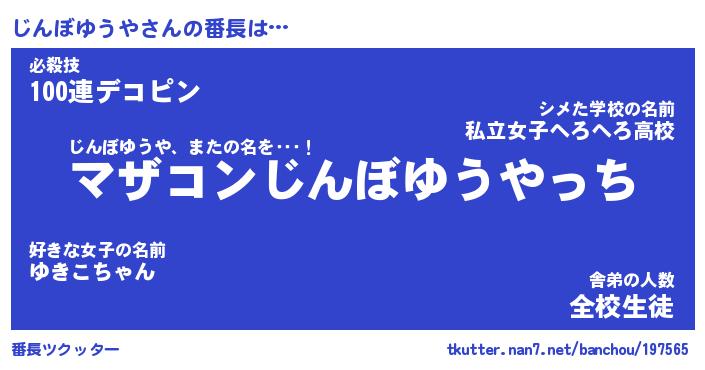 | 肩書あだ名 | 『じんぼゆうやCEO』『じんぼゆうや班長』 |