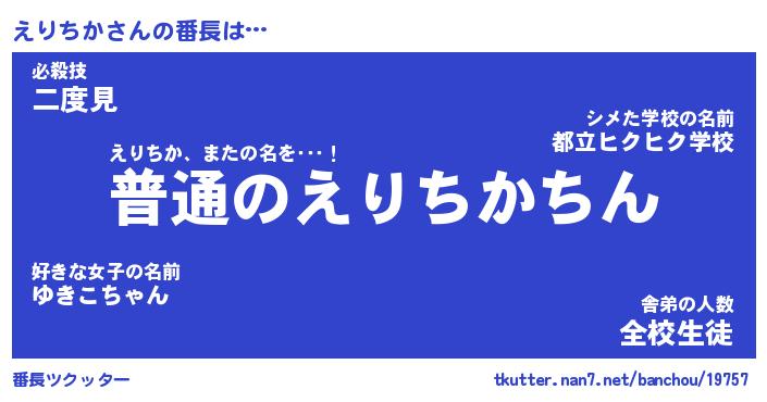 | 肩書あだ名 | 『えりちか社長令嬢』『えりちか総理大臣』 |