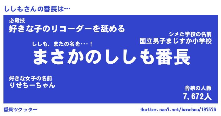 | ヒーロー風カッコイイあだ名 | 『スーパーシシモ』『ウルトラししもマン』 |