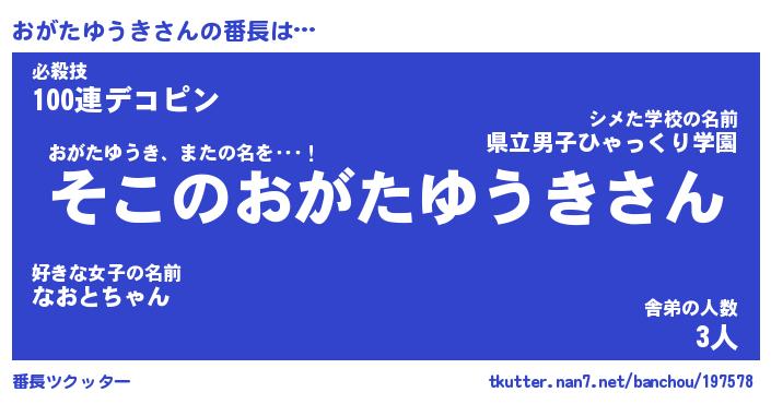 | ピコ太郎風あだ名 | 『オコ次郎』『ピオ三郎』『オガ八郎』 |