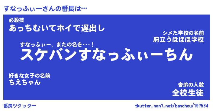 | ヒーロー風カッコイイあだ名 | 『スーパースナッフィー』『暗黒騎士スナ』 |