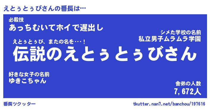 | 男性向けラノベタイトル風あだ名 | 『えとぅとぅびの憂鬱』 |