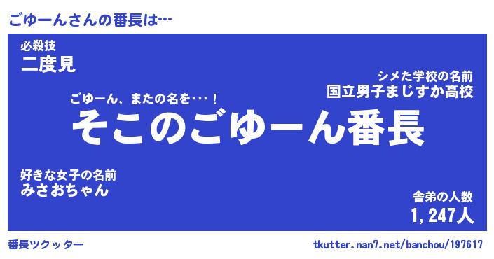 | ファンタジー風あだ名 | 『ゴユフェル』『エターナルゴユーンー』 |