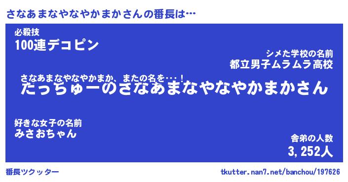| 男性向けラノベタイトル風あだ名 | 『さなあまなやなやかまかの憂鬱』 |