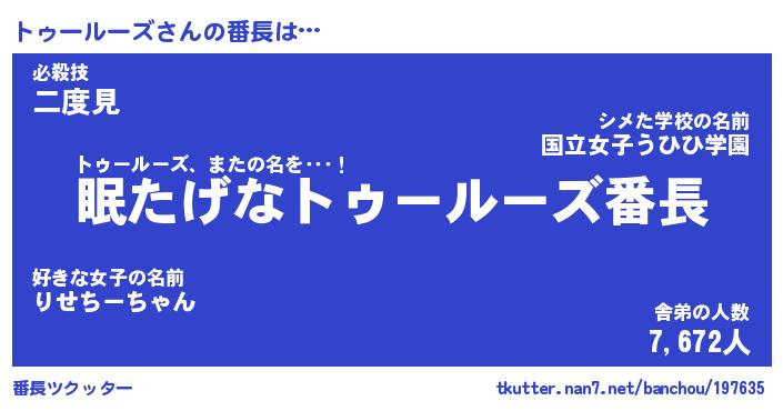 | 2回繰り返すあだ名 | 『トゥトゥ』『トトゥゥ』『ぬらぬら』 |