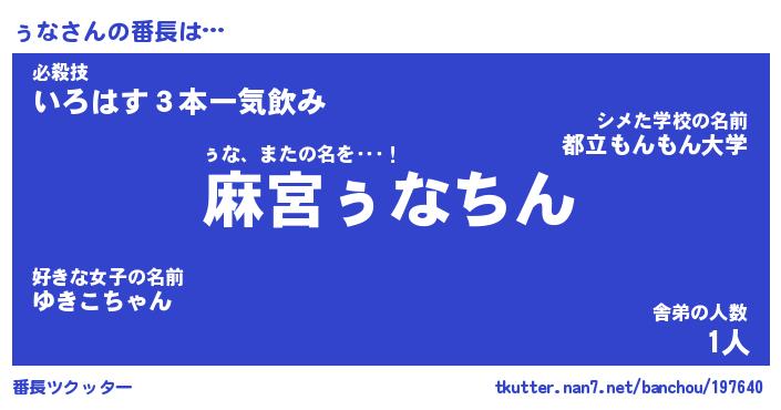 | ヒーロー風カッコイイあだ名 | 『スーパーゥナ』『ウルトラぅなマン』 |