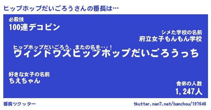 | 恥ずかしいあだ名 | 『プリティーヒップホップだいごろう』 |