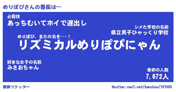 | 意味不明あだ名 | 『ペロリンめりぽぴ』『永久保存めりぽぴ』 |
