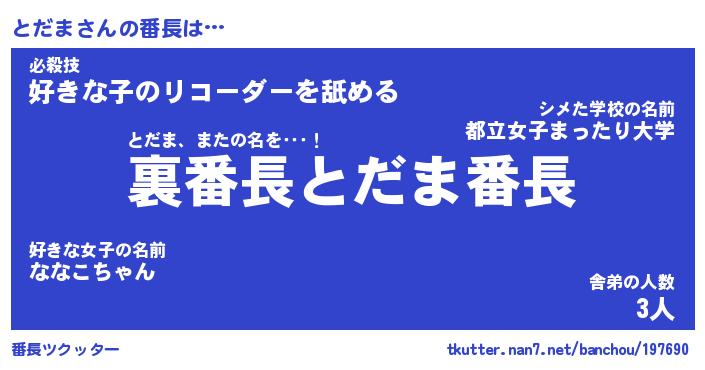 | 肩書あだ名 | 『とだま御曹司』『とだま国家主席』 |