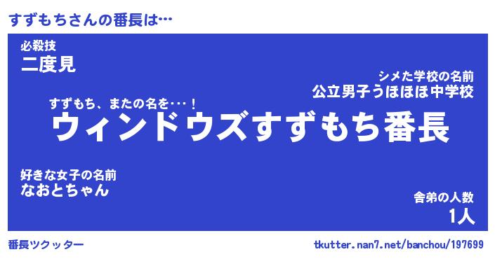 | ヒーロー風カッコイイあだ名 | 『スーパースズモチ』『炎刃騎士スズ』 |