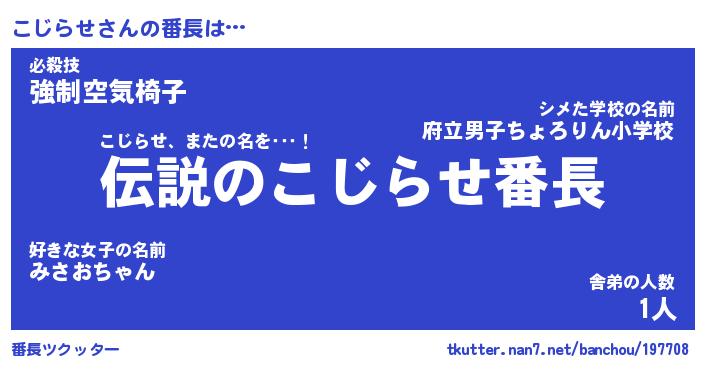 | 2回繰り返すあだ名 | 『こじこじ』『ここじじ』『おたおた』 |