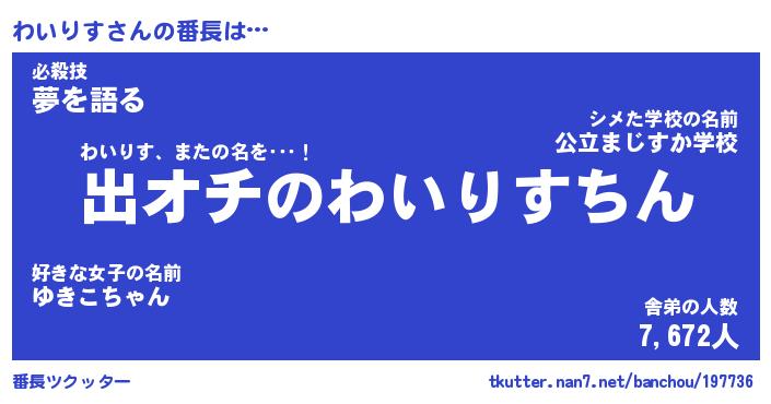 | 肩書あだ名 | 『わいりす店長』『わいりす大統領』 |