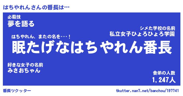 | ヒーロー風カッコイイあだ名 | 『スーパーハチヤレン』『銀牙騎士ハチ』 |