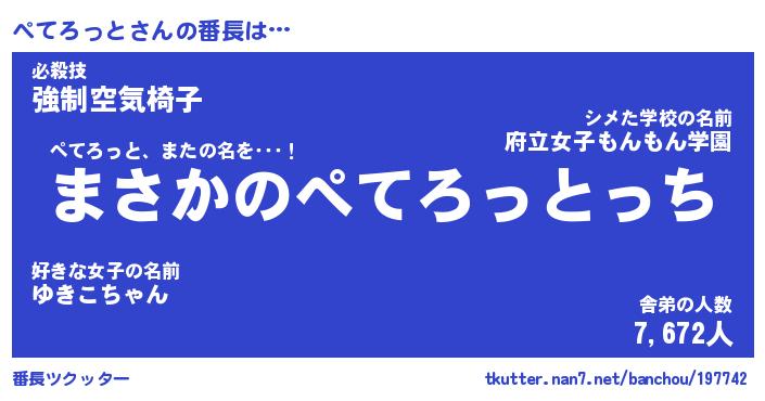 | 伝説のあだ名 | 『伝説のスナイパーぺてろっと』 |