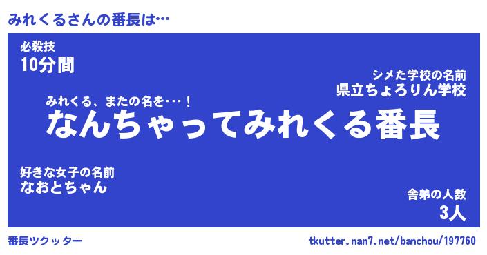 | 肩書あだ名 | 『みれくる御曹司』『みれくる国家主席』 |