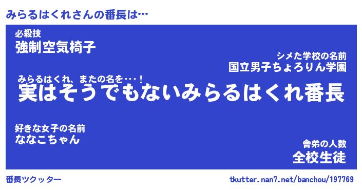 | ヒーロー風カッコイイあだ名 | 『スーパーミラルハクレ』『暗黒騎士ミラ』 |