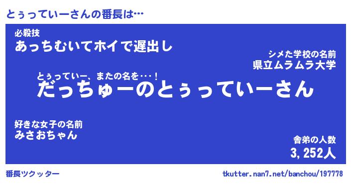 | ポケモン風あだ名 | 『トゥチュウ』『トゥッダネ』 |
