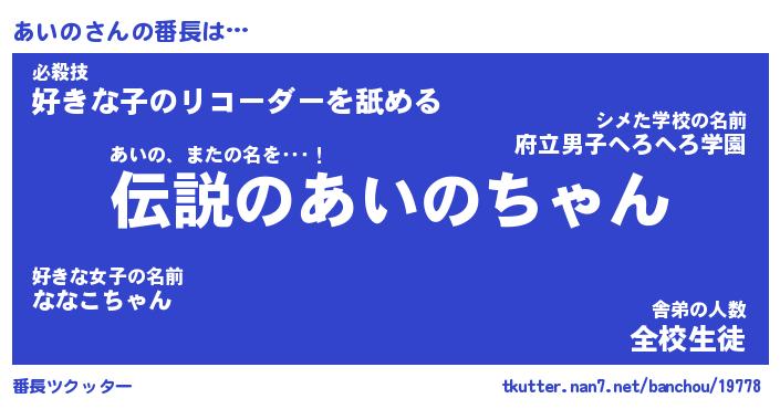 | 伝説のあだ名 | 『伝説のスナイパーあいの』 |
