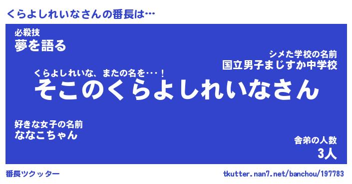 | 意味不明あだ名 | 『ペロリンくらよしれいな』 |