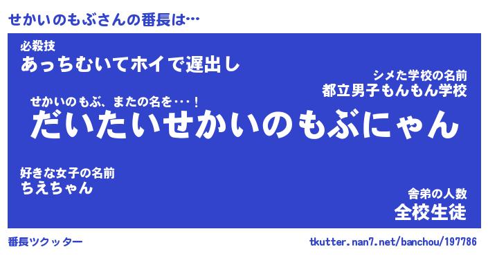 | 肩書あだ名 | 『せかいのもぶ店長』『せかいのもぶ班長』 |