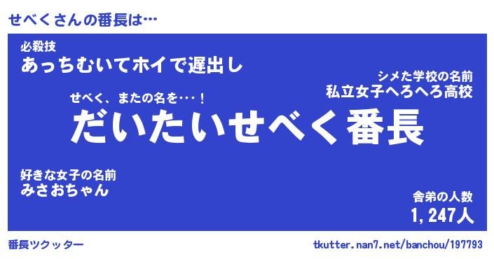 | 意味不明あだ名 | 『ペロリンせべく』『せべくフォーエバー』 |
