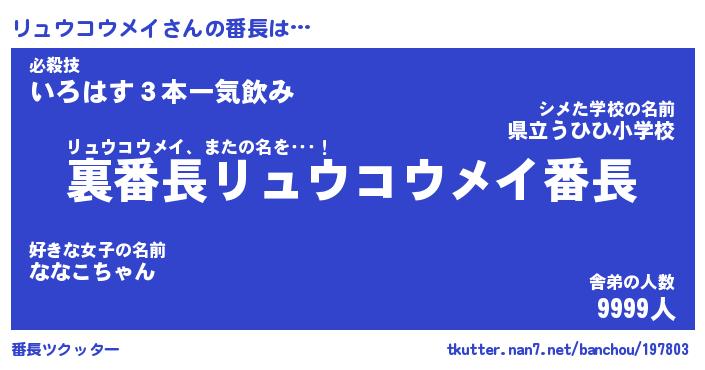 | 肩書あだ名 | 『リュウコウメイ店長』 |