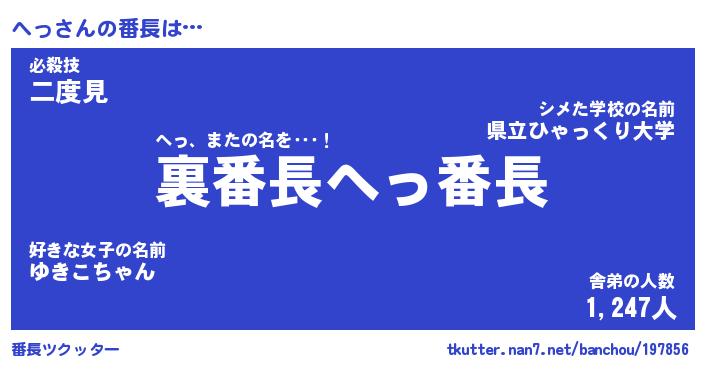 | 肩書あだ名 | 『へっ店長』『へっ総理大臣』 |