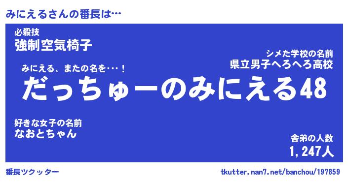 | 肩書あだ名 | 『みにえるCEO』『みにえる大統領』 |