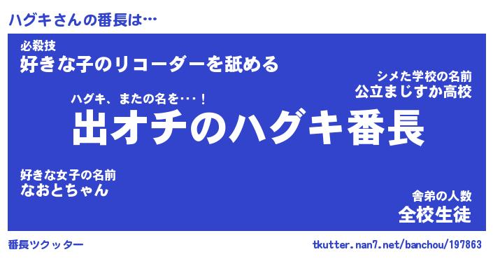 | ピコ太郎風あだ名 | 『ハコ八郎』『ピハ二郎』『ハグ三郎』 |