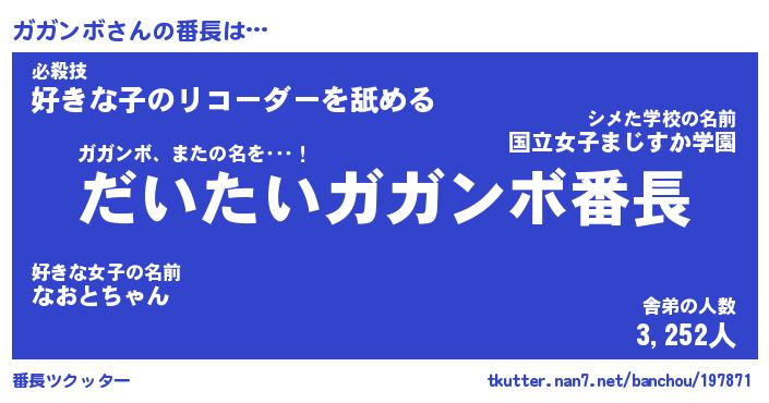 | ヒーロー風カッコイイあだ名 | 『スーパーガガンボ』『幻影騎士ガガ』 |