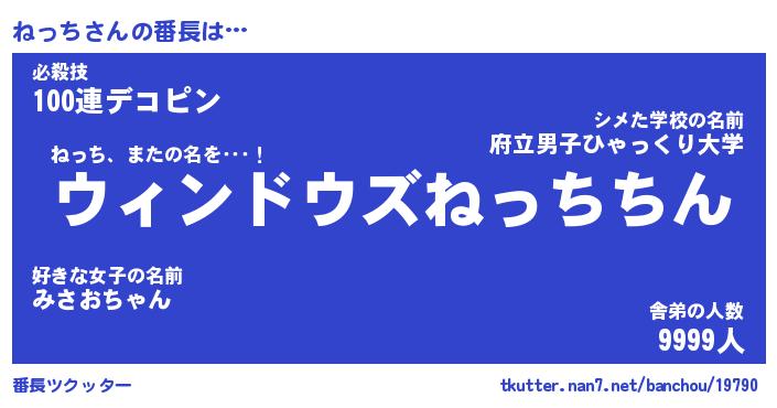 | ヘコむあだ名 | 『ねっもー』『つくし』『ねっ太郎』 |