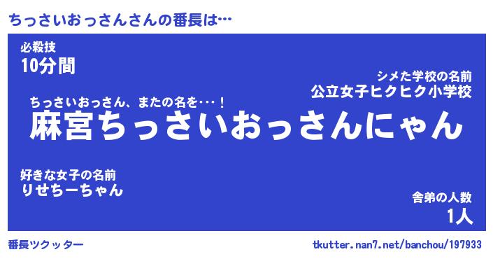 | 意味不明あだ名 | 『ペロリンちっさいおっさん』 |