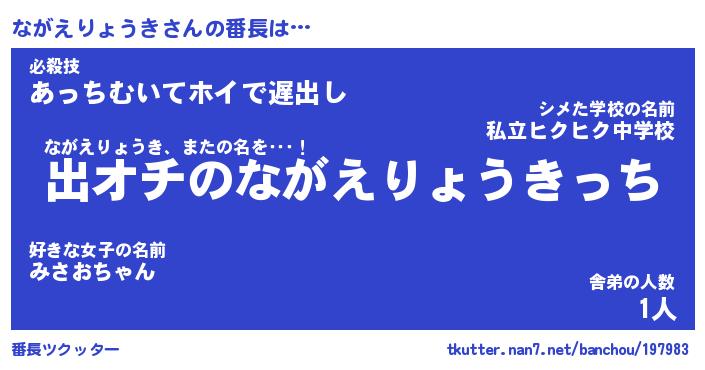 | 意味不明あだ名 | 『ペロリンながえりょうき』 |